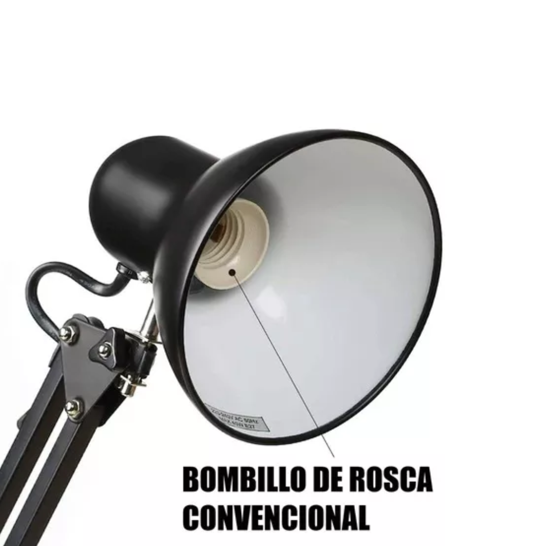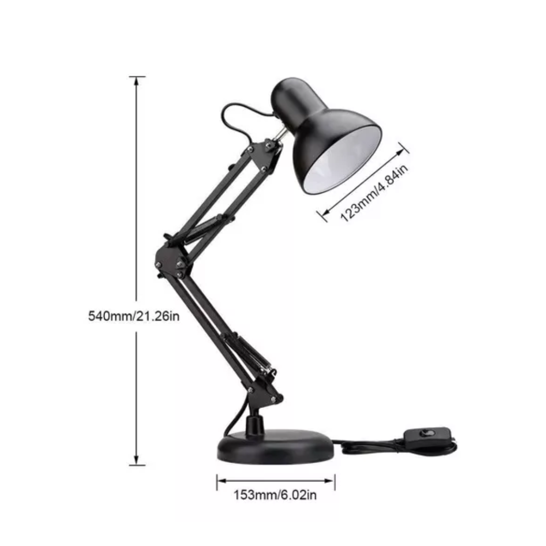 La lámpara de mesa para escritorio de estudio con brazo flexible es un dispositivo de iluminación elegante y funcional diseñado para satisfacer las necesidades de los amantes de la lectura, estudiantes y profesionales que requieren una iluminación óptima en su espacio de trabajo. Esta lámpara combina forma y función de manera excepcional. El cuerpo de la lámpara está fabricado con materiales de alta calidad, generalmente aluminio o acero inoxidable, lo que le confiere durabilidad y una apariencia moderna y sofisticada. Su diseño elegante se integra perfectamente en cualquier entorno, ya sea en un escritorio de oficina, una mesa de estudio en casa o una mesa de trabajo en un taller. El brazo flexible es uno de los rasgos distintivos de esta lámpara. Este brazo permite ajustar la dirección y el ángulo de la luz con facilidad, adaptándola a las necesidades específicas del usuario. Puedes dirigir la luz directamente a tus libros, papeles o pantalla de computadora para evitar sombras molestas y reducir la fatiga ocular. El brazo flexible facilita la personalización de la iluminación según las preferencias individuales y las tareas en curso. La fuente de luz de esta lámpara suele ser una bombilla LED, que proporciona una iluminación intensa y eficiente. Los LED son conocidos por su bajo consumo de energía y su larga vida útil, lo que reduce la necesidad de reemplazar la bombilla con frecuencia. Además, la mayoría de estas lámparas ofrecen opciones de atenuación para ajustar la intensidad de la luz a diferentes situaciones y preferencias de iluminación. En cuanto a la base de la lámpara, generalmente es lo suficientemente pesada para mantenerla estable en el escritorio, lo que evita que la lámpara se vuelque accidentalmente. En resumen, la lámpara de mesa para escritorio de estudio con brazo flexible es una combinación de elegancia, versatilidad y eficiencia. Su diseño moderno y su capacidad de ajuste la convierten en una adición esencial para cualquier espacio de trabajo, brindando la iluminación perfecta para aumentar la productividad y el confort en tu área de estudio o trabajo.Material: Metal y plásticoColor: NegroVoltaje: 110-220VLongitud del cable de alimentación: 1,23 mAltura del producto: 54-60CM.
